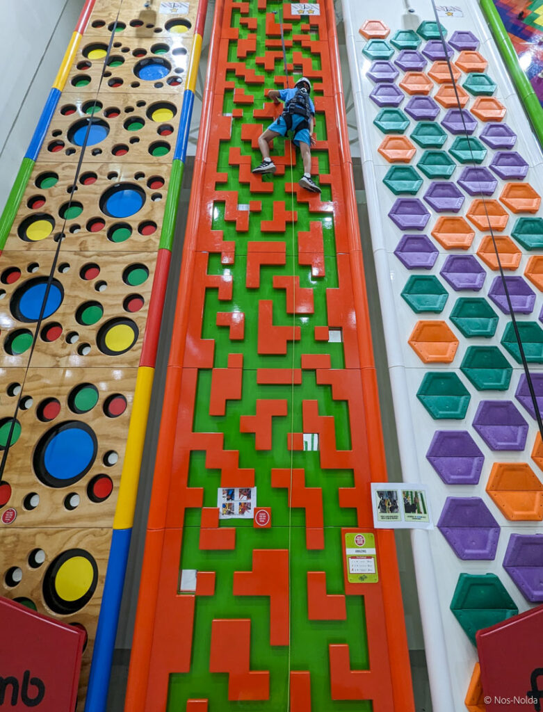 Indoor, you can participate to many activities like indoor climbing (walls with different levels), aerial rope and net adventure, …